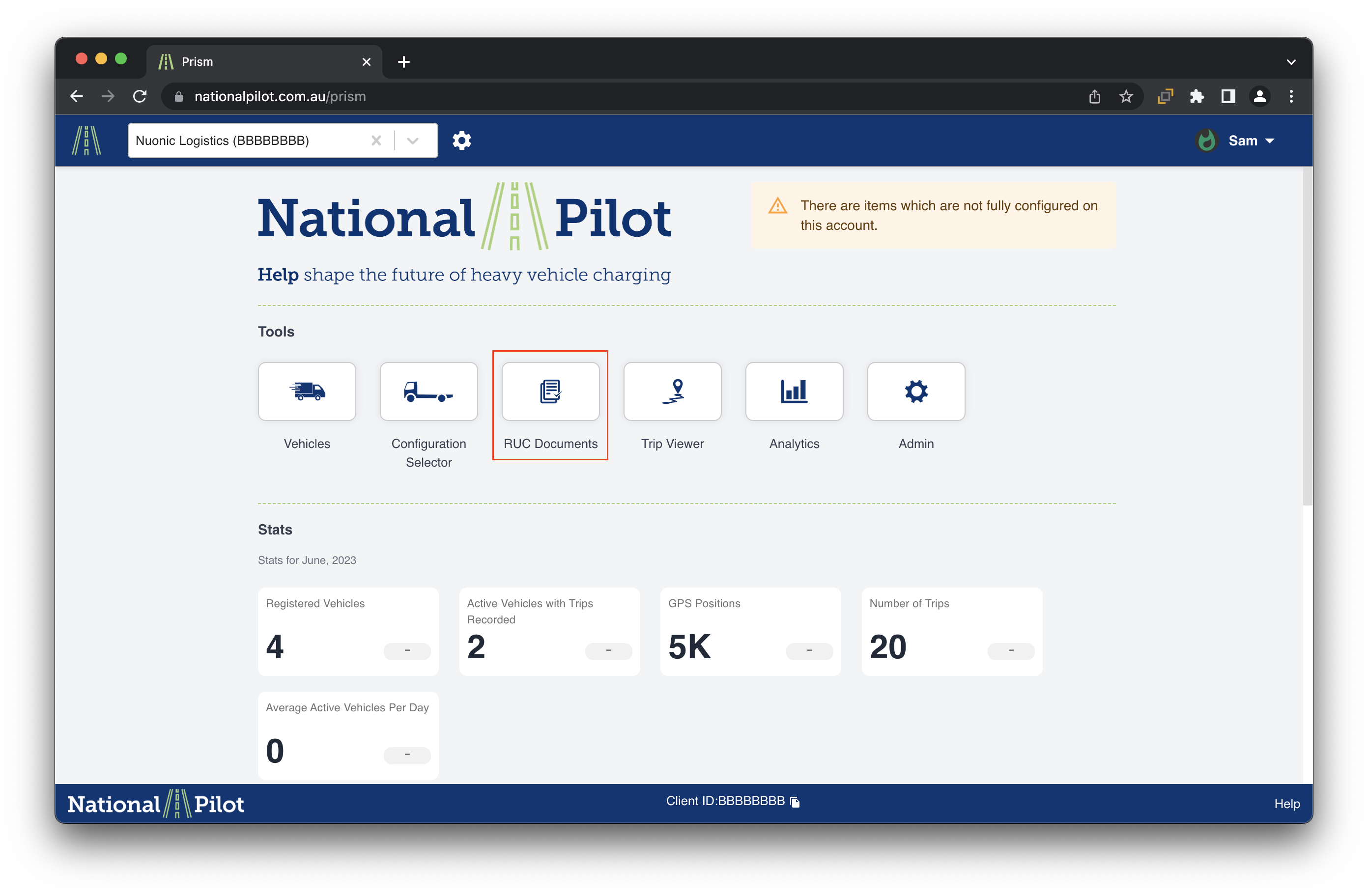 From the account's homepage, navigate to the "RUC Documents" section. Upon selection, a new page will open displaying the invoices available for download at your convenience.