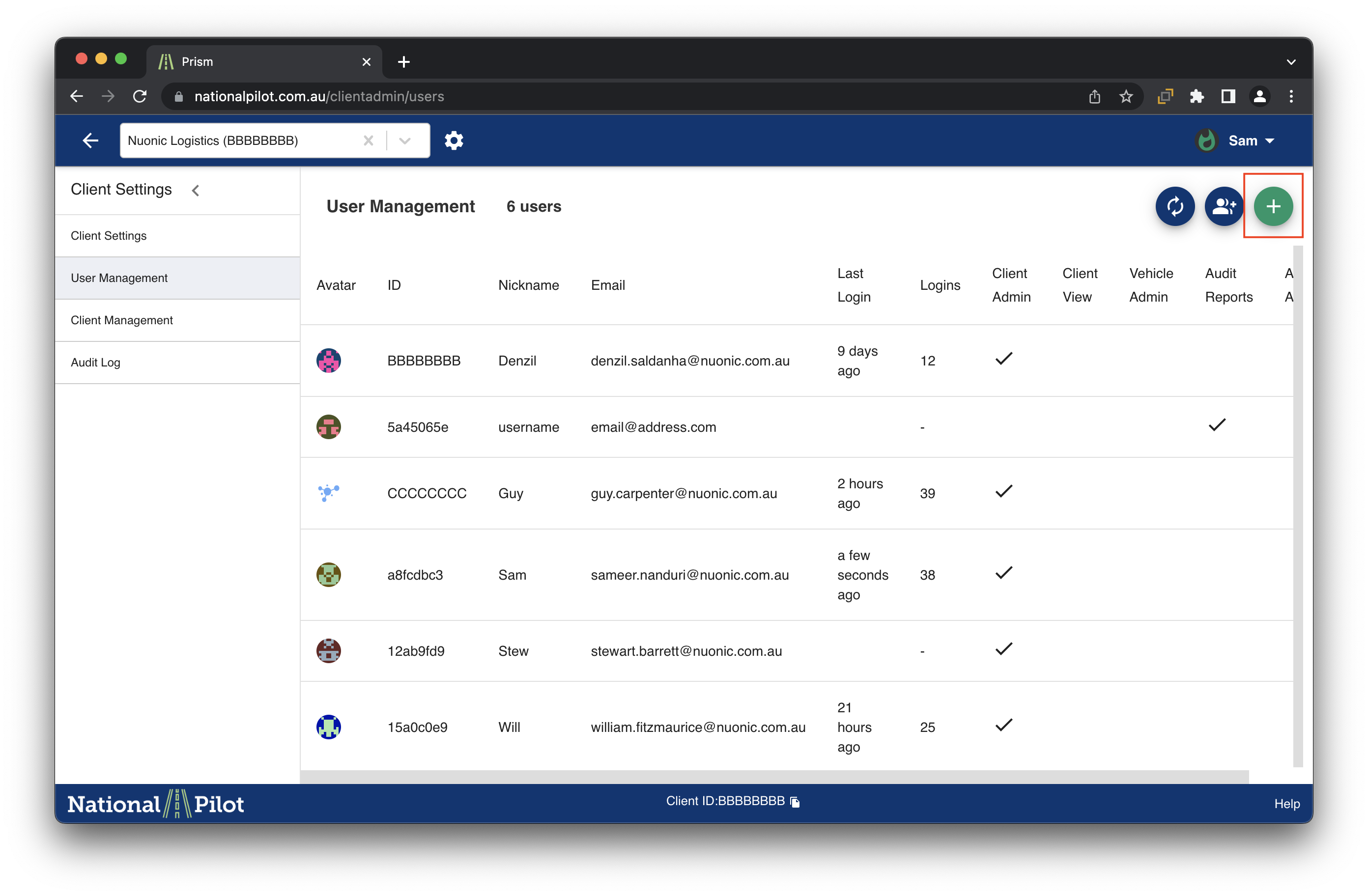 If you wish to add a user, select the User Management page from the pane the left hand side. Once the User Management tab is open, select the '+' option on the top right corner of the page. Selecting the option would open a Create new user page.