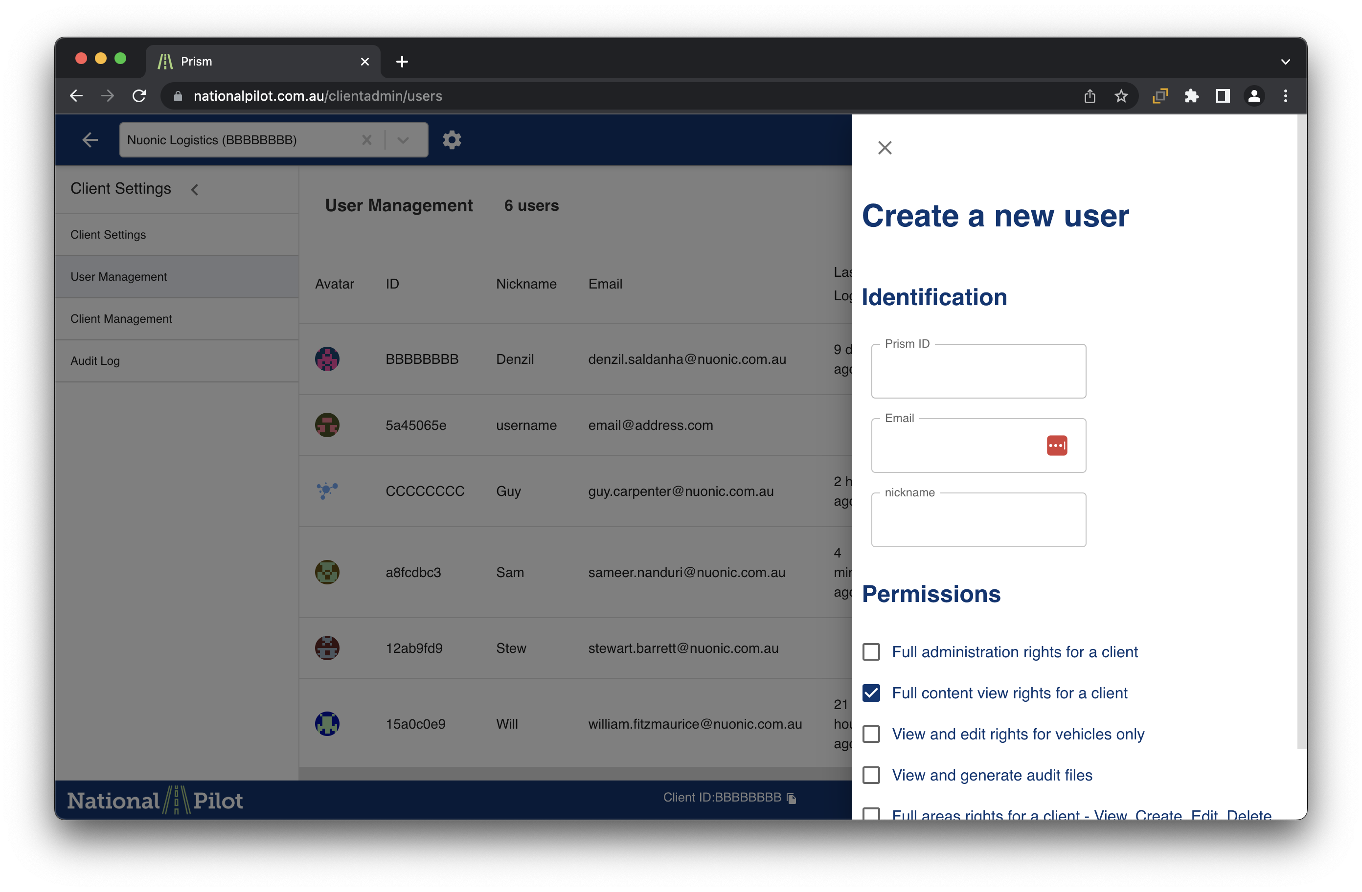 From the create a new user page, please enter the new user’s email and nickname. Please leave the Prism ID blank.