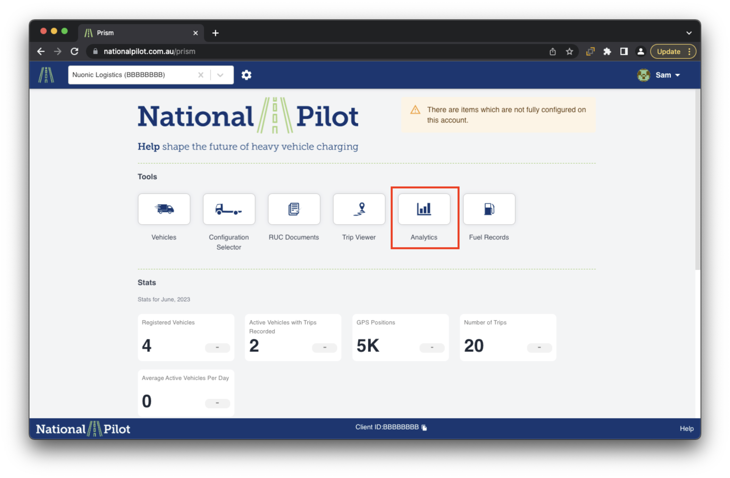 Once logged in, Please click on the analytics section to open up different visualisations