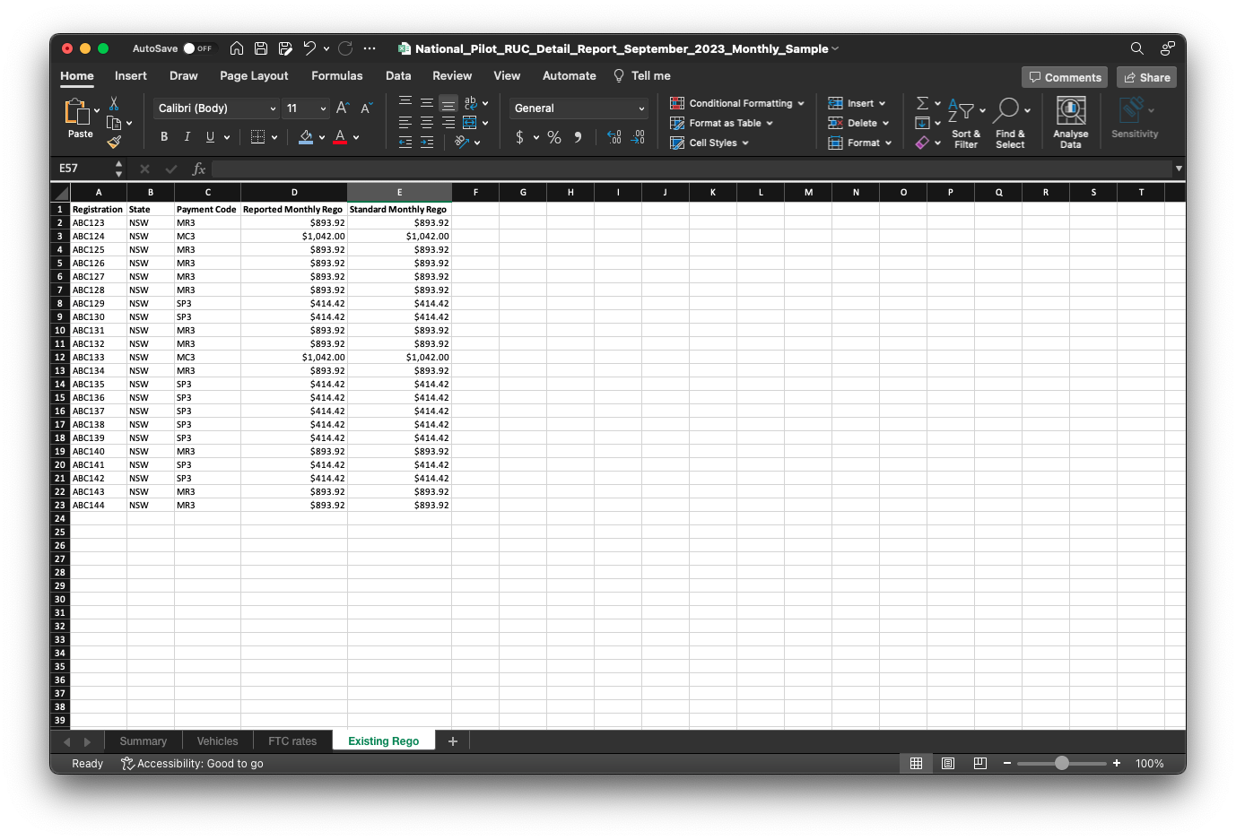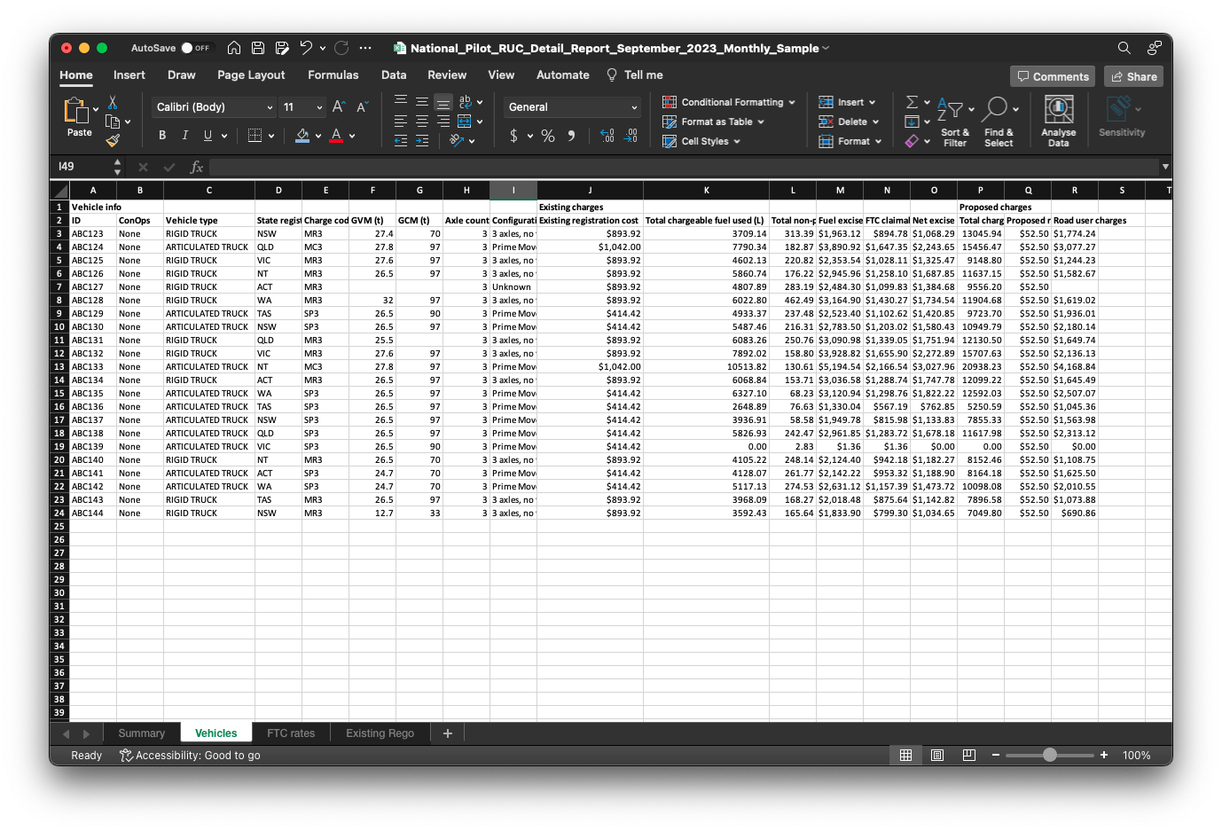 In this tab, you will find the registration charges for each individual vehicle, accompanied by the corresponding NHVR (National Heavy Vehicle Register) vehicle registration charge code. This tab serves as a comprehensive reference to easily access and understand the specific registration charges associated with each vehicle.